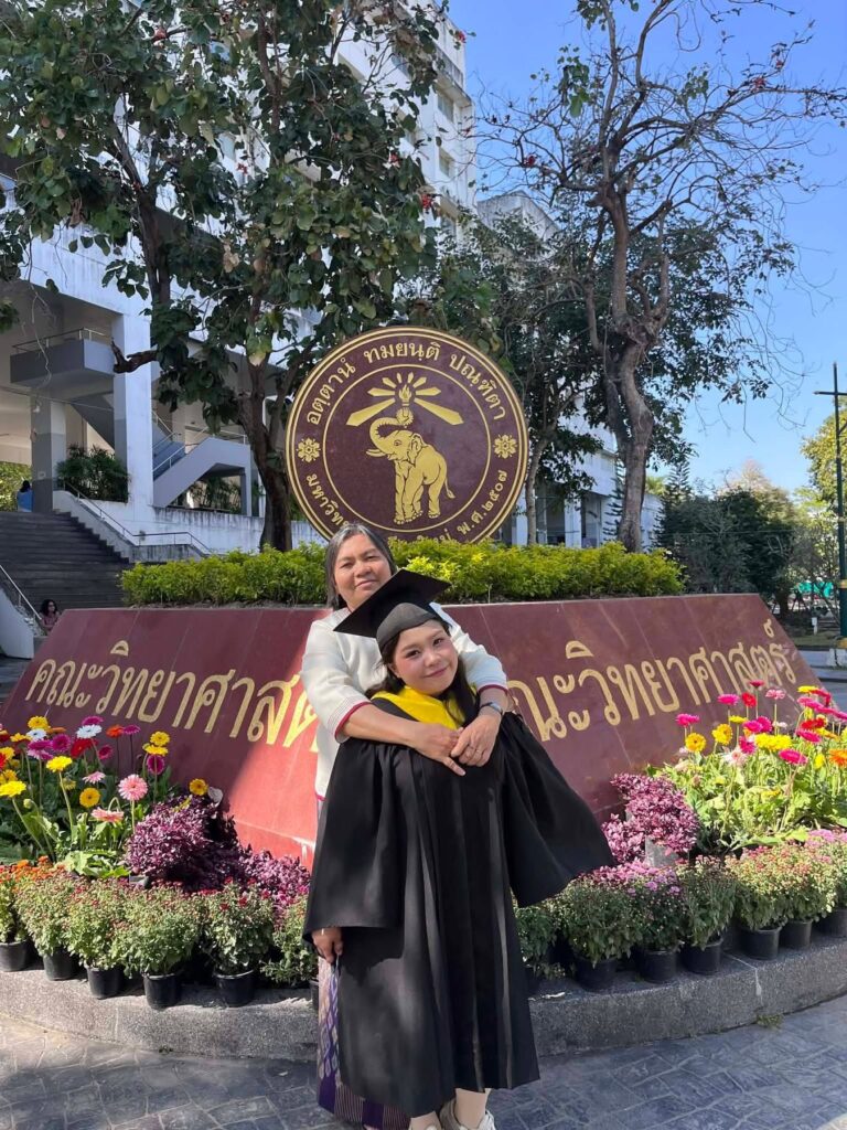 Hoy celebramos que Lay Lay Wah se ha graduado en Ciencias Ambientales por la Universidad de Chiang Mai. Su esfuerzo y constancia la han llevado a completar una carrera universitaria en un ámbito clave para el futuro sostenible de la región.