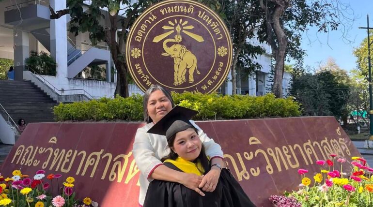 Hoy celebramos que Lay Lay Wah se ha graduado en Ciencias Ambientales por la Universidad de Chiang Mai. Su esfuerzo y constancia la han llevado a completar una carrera universitaria en un ámbito clave para el futuro sostenible de la región.