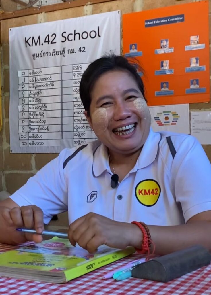 Ni Lar, actual directora de la Escuela KM42, nos cuenta que el colegio nació en 2010 de forma muy humilde, con solo tres profesores voluntarios y muchos sueños. Era un proyecto pequeño, levantado con esfuerzo para dar respuesta a una necesidad urgente: que los niños y niñas migrantes de la zona de Phop Phra tuvieran acceso a la educación. Cuando Colabora Birmania conoció la escuela, entendió que allí había una semilla poderosa y decidió invertir de lleno en ella. Desde entonces, se han construido nuevos edificios, se ha apoyado la escolarización y este año hemos alcanzado los 350 alumnos y 12 profesores.